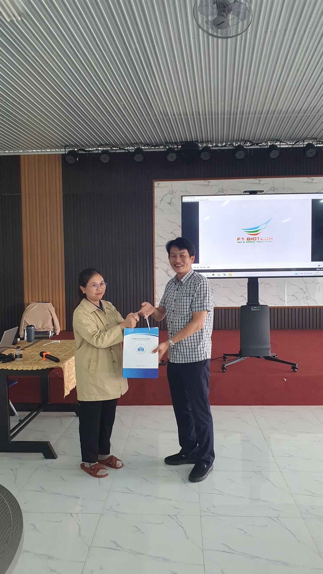Trong buổi chiều ngày hôm đó, đoàn lại được tham quan công ty TNHH CNSH F1 - là một trong những Công ty hàng đầu Việt Nam trong lĩnh vực nuôi cấy mô. Đoàn được quý công ty tiếp đón rất nhiệt tình, SV được nghe giới thiệu về sự hình thành và phát triển không ngừng của công ty về cả quy mô và vị thế từ khi mới thành lập cho đến nay, sau đó SV được ban giám đốc và quản lý công ty trực tiếp hướng dẫn đi tham quan quy trình làm việc tại công ty, giới thiệu chức năng, nhiệm vụ của từng phòng và giải đáp tường tận những thắc mắc của SV. Qua đây, SV có niềm đam mê về CNSH thực vật, đặc biệt là lĩnh vực nuôi cấy mô sẽ có thể xem đây là một môi trường làm việc năng động, chuyên nghiệp, hiện đại để ứng tuyển sau khi ra trường.