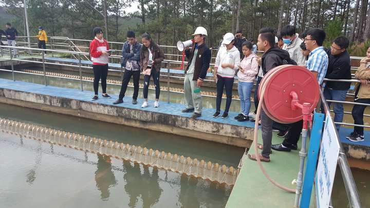 Hình ảnh sinh viện ngành Kỹ thuật Môi trường- Viện CNSH&MT tham quan kiến tập hệ thống xử lý môi trường tại thành phố Đà Lạt