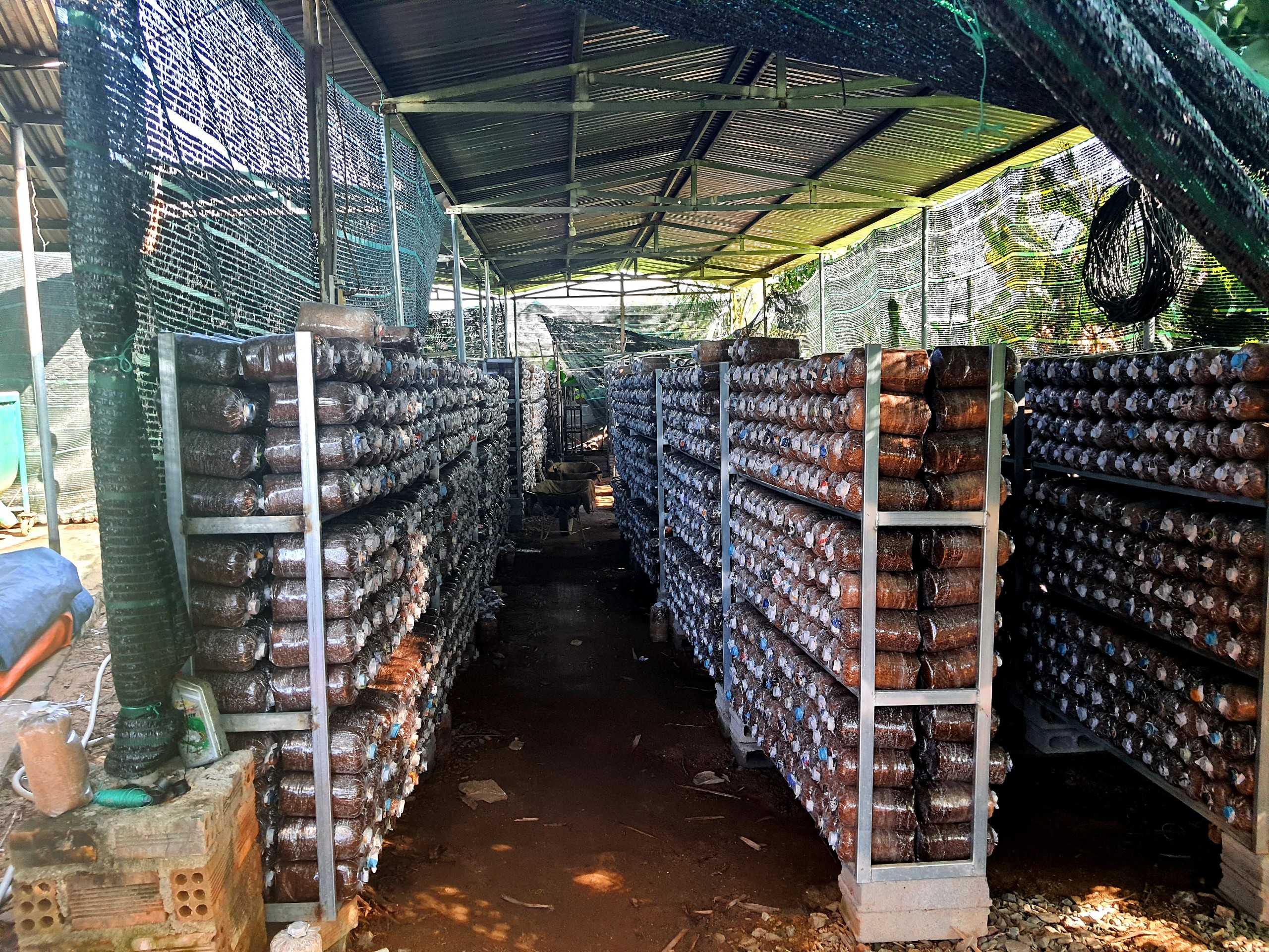 Nhà ủ tơ nấm tại cơ sở sản xuất thôn Lương Phước, xã Bình Lộc, huyện Diên Khánh.