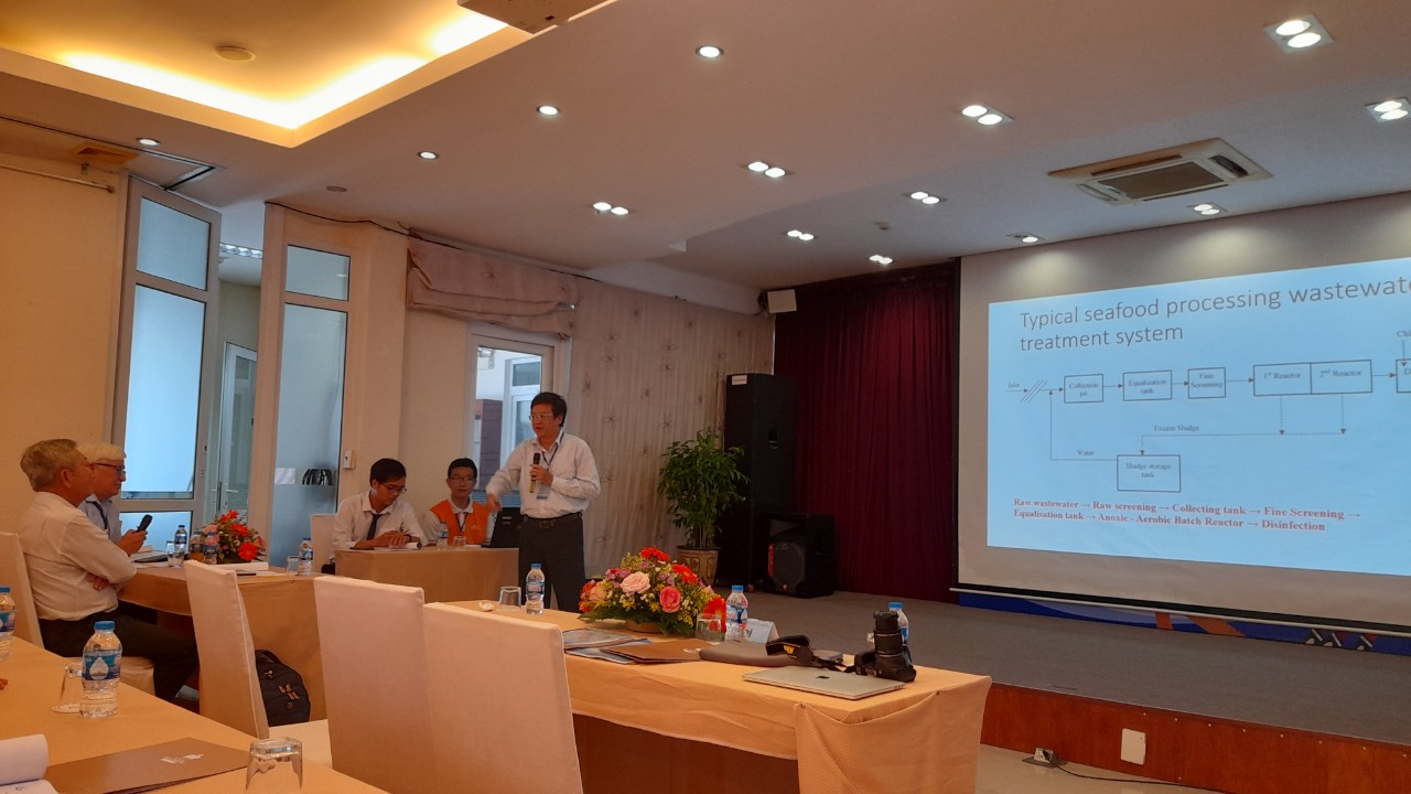 - Phần II “Nước thải trong các doanh nghiệp chế biến thủy sản”, hội thảo tập trung vào thảo luận tháo gỡ các khó khăn trong quản lý, vận hành các hệ thống xử lý nước thải chế biến thủy sản với đặc trưng ô nhiễm N, P rất cao và nguồn thải không ổn định do phụ thuộc vào mùa vụ sản xuất. Các công nghệ AO, A2O hay CF-SBR, MBR…tập trung xử lý N, P được trao đổi bên cạnh các đánh giá chung về xử lý hay thu hồi nước thải thủy sản; tiềm năng năng lượng tận thu từ hệ thống xử lý nước thải.