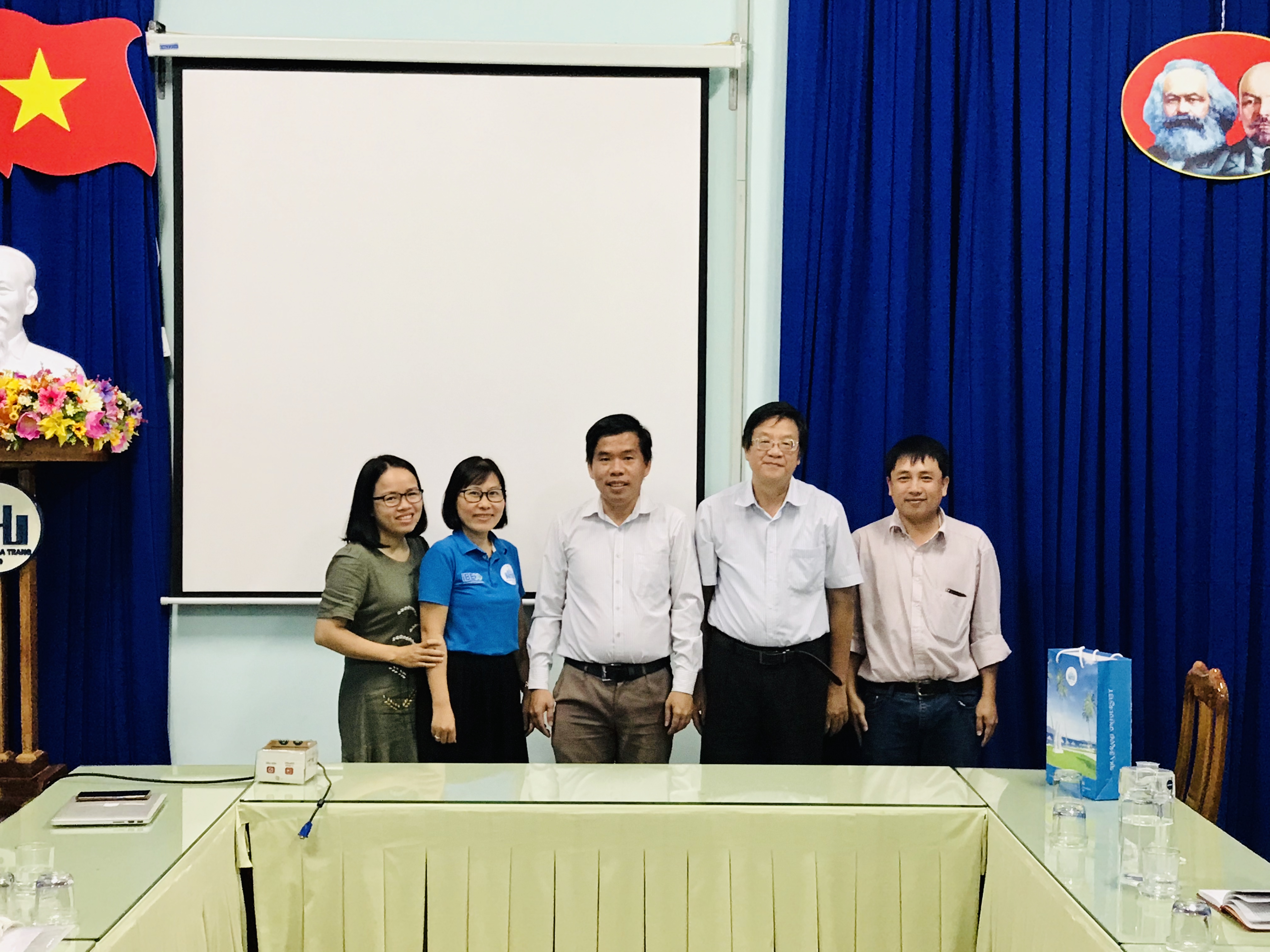 Sau buổi thảo luận với sinh viên, PGS.TS.Trần Lê Lựu và PGS.TS.Ngô Đăng Nghĩa cùng trao đổi về các hướng nghiên cứu và hợp tác liên quan đến: nâng cao trách nhiệm xã hội về giáo dục môi trường trong cộng đồng, nghiên cứu xử lý nước thải chế biến thuỷ sản và nuôi trồng thuỷ sản.