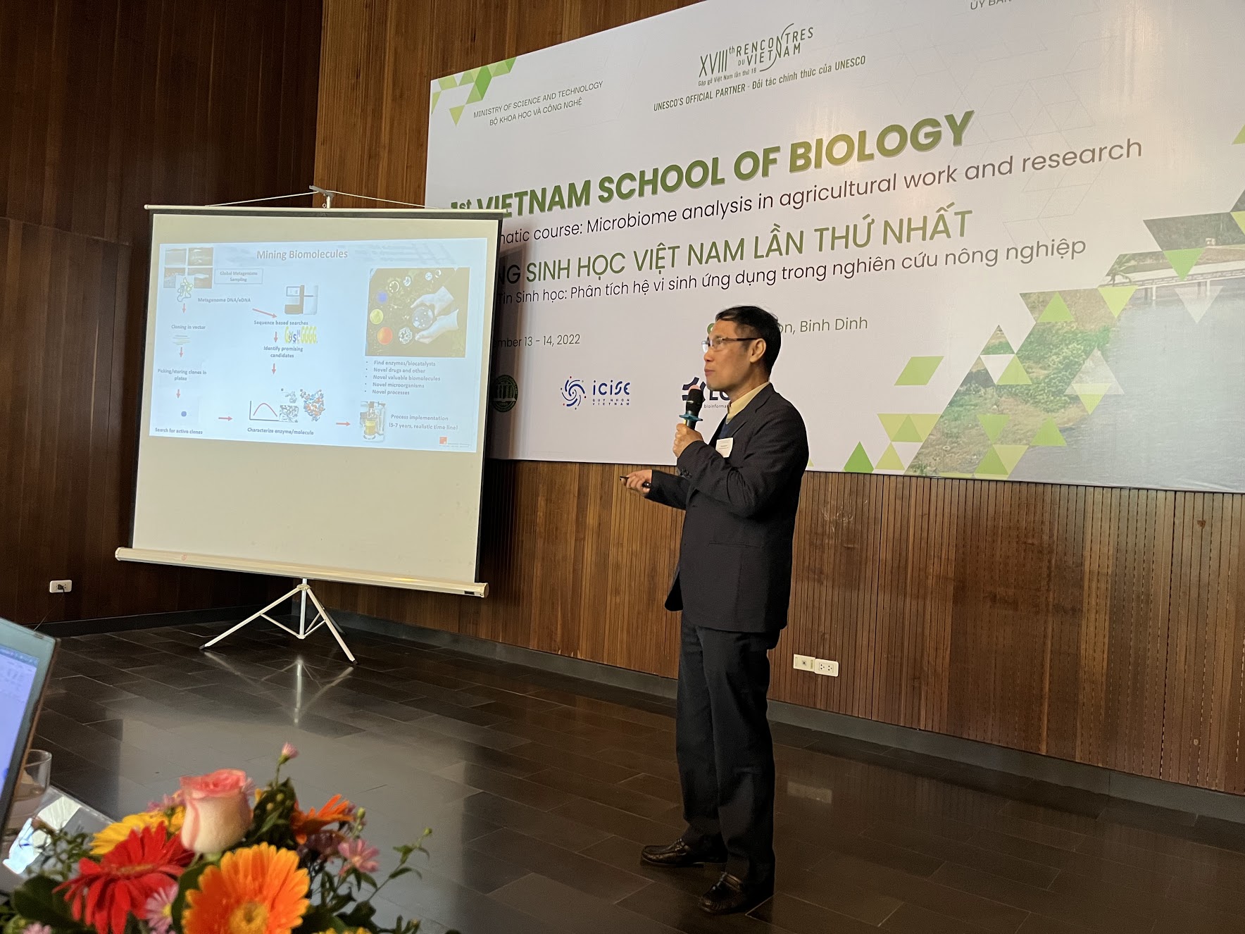 Đây là lần đầu tiên Trường Sinh học Việt Nam được tổ chức tại ICISE, Quy Nhơn với sự tham gia của hơn 30 học viên là giảng viên, nghiên cứu viên đến từ các Trường đại học và Viện nghiên cứu trong cả nước. Khóa học tập trung vào các kiến thức và kỹ năng thực hành nhằm phân tích mối quan hệ giữa động thực vật và hệ vi sinh vật trong nhiều môi trường sống khác nhau bằng cách sử dụng kỹ thuật giải trình tự thế hệ mới, các công cụ tin sinh học, các kỹ năng phân tích bộ dữ liệu metagenome.