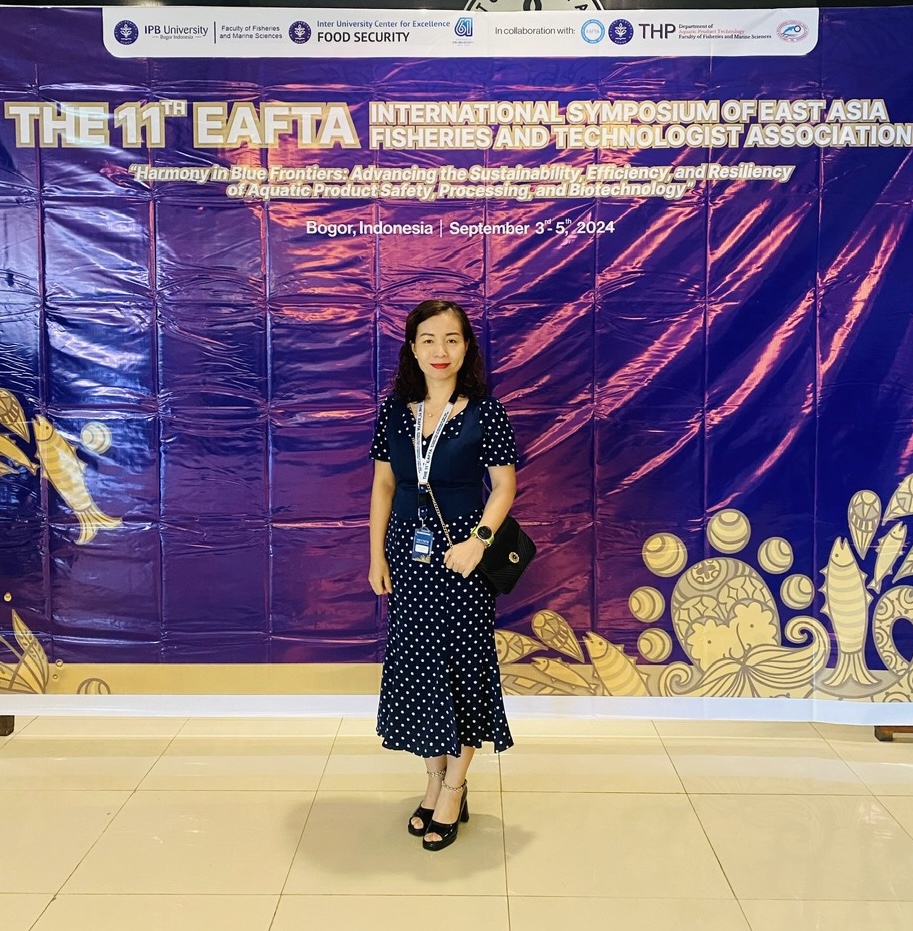 Từ ngày 3/9/2024 - 5/9/2024, tại Trung tâm Hội nghị Quốc tế IPB, Đại học IPB, Bogor, Indonesia, giảng viên Viện CNSHMT - TS Nguyễn Thị Hải Thanh đã tham dự và trình bày báo cáo tại hội nghị EAFTA 2024. Hội nghị là diễn đàn khoa học công nghệ thường niên của Hiệp hội công nghệ và nghề cá Đông Á (EAFTA). Chủ đề của hội thảo năm nay tập trung vào các nghiên cứu mới nhất về “Sự hài hòa trong biên giới xanh: Thúc đẩy tính bền vững, hiệu quả và khả năng phục hồi của an toàn sản phẩm thủy sản, chế biến và công nghệ sinh học”