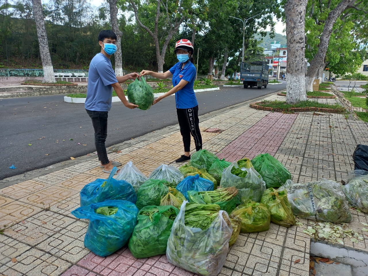Sinh viên nhận hỗ trợ rau và thực phẩm