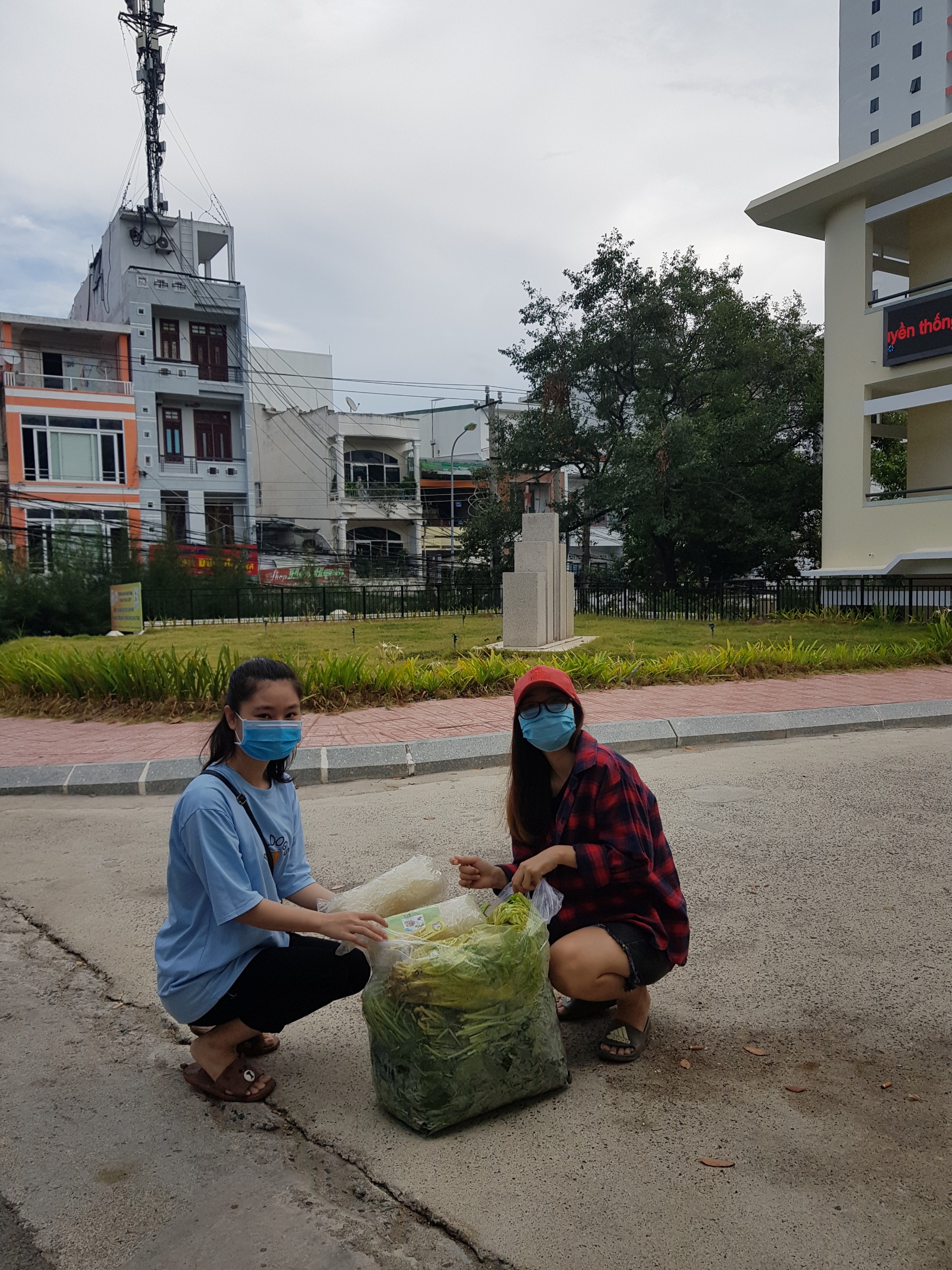Sinh viên Nguyễn Thị Hiền và Võ Thị Minh Thuận (59CNSH) đang ở trọ gần trường cùng một số bạn khác tâm sự, các bạn đều là sinh viên bị kẹt lại và ba mẹ ở quê cũng đang khó khăn do dịch Covid-19 nên cũng không thể hỗ trợ được nhiều. Bạn đại diện cho một số bạn đi nhận rau rồi về chia lại cho một số bạn khác. Tất cả các bạn đều cảm thấy ấm lòng khi giữa mùa dịch được nhiều sự hỗ trợ từ quý cơ quan.