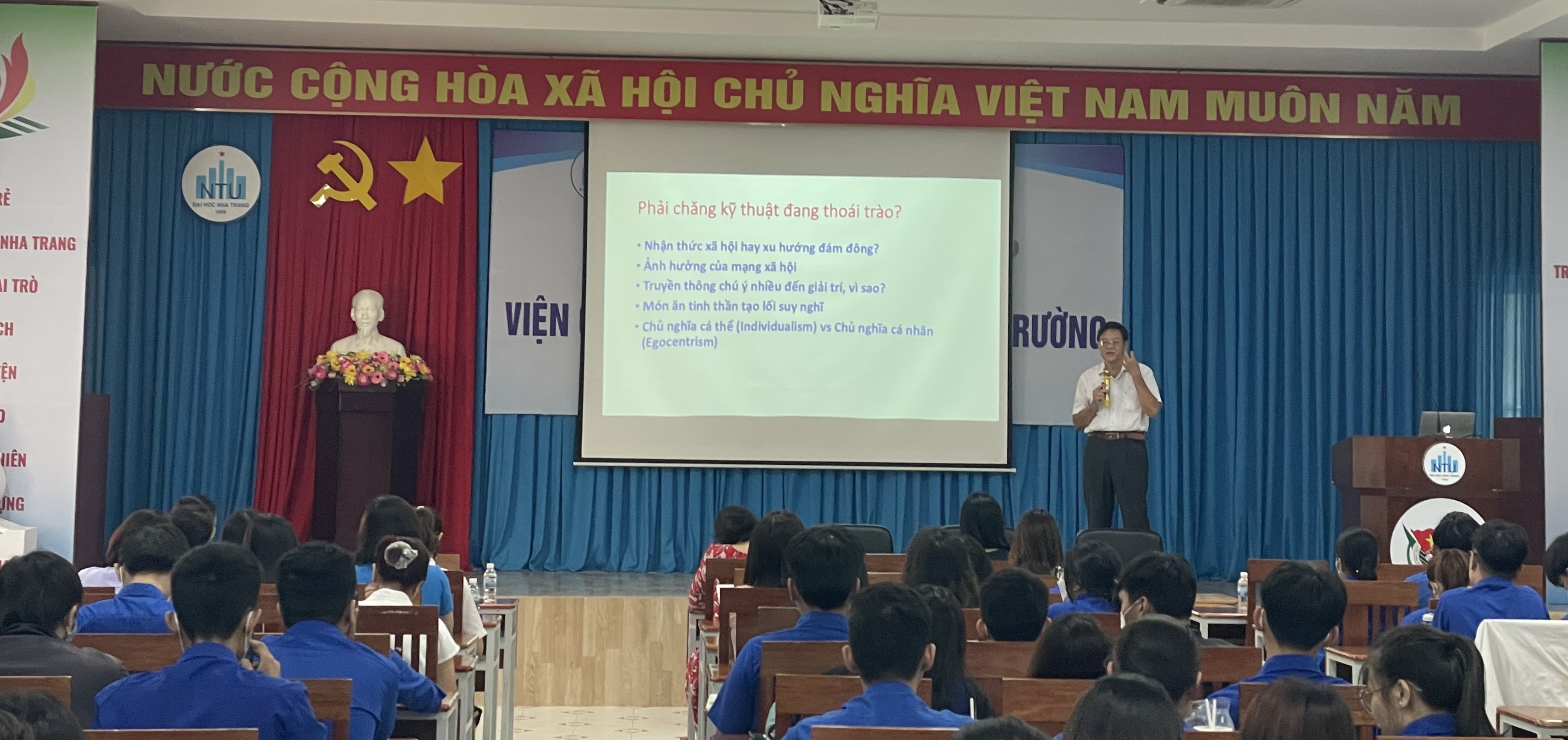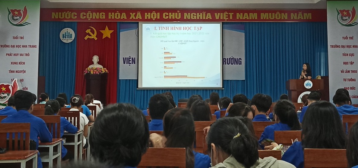 Chiều ngày 12 tháng 6 năm 2022, tại Hội trường số 1, trường Đại học Nha Trang, Viện CNSH&MT đã tổ chức “Hội nghị học tốt và định hướng nghề nghiệp năm học 2021 – 2022” nhằm phân tích, đánh giá tình hình học tập, rèn luyện của sinh viên cũng như tạo diễn đàn để sinh viên được giao lưu, học hỏi, trao đổi kinh nghiệm góp phần nâng cao chất lượng học tập và rèn luyện.