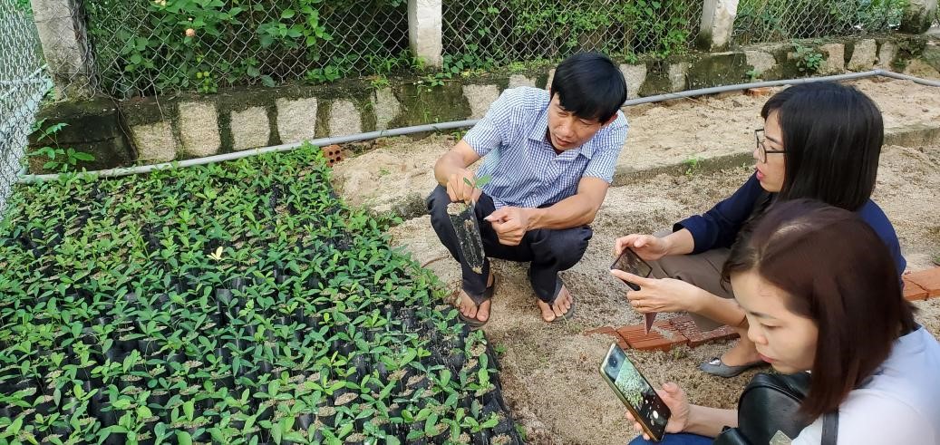 Hình 2: Ông Trần Bá Ninh giới thiệu Vườn ươm hạt xáo tam phân tại Ninh Hòa