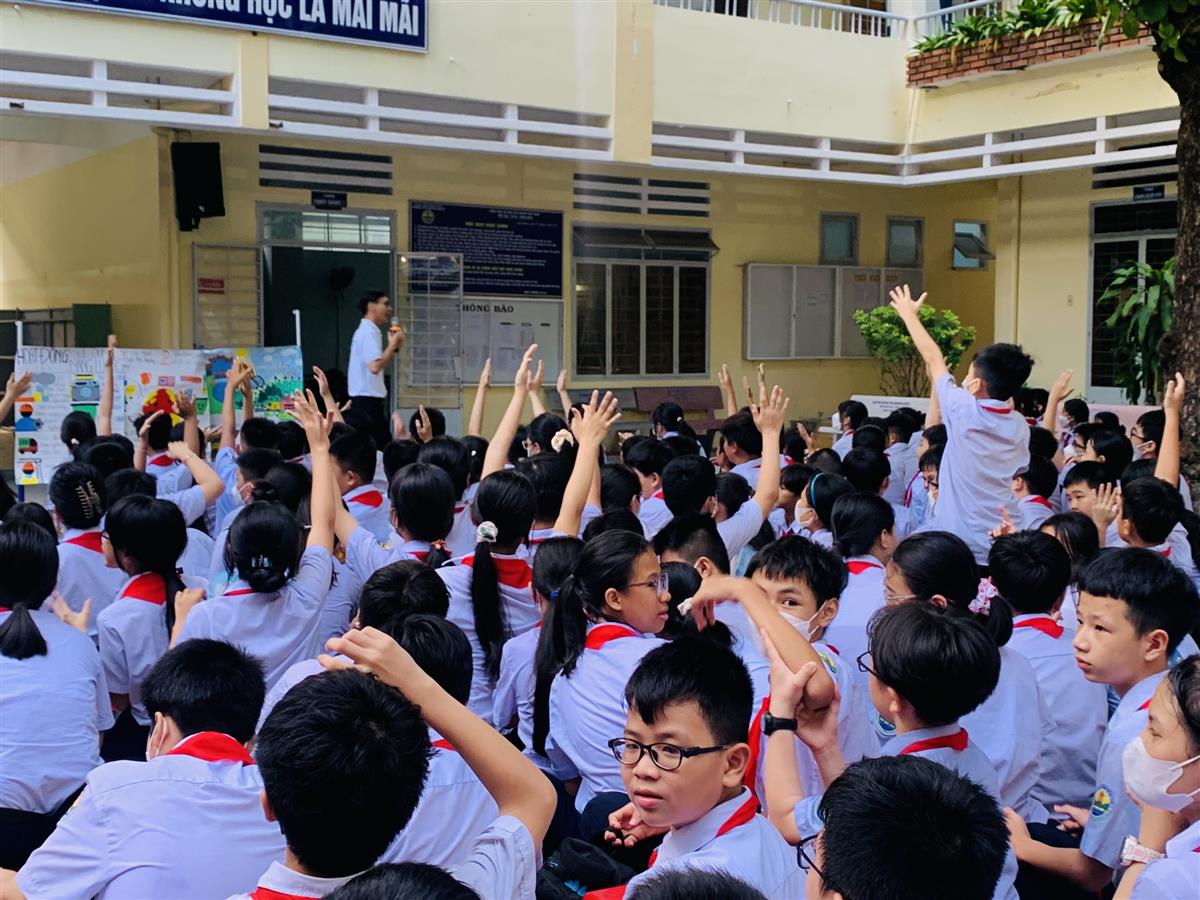 Chiều 15.5.2023, tại buổi chào cờ đầu tuần, học sinh THCS Nguyễn Khuyến đã được tham gia hoạt động tìm hiểu về gia tăng khí nhà kính tác động môi trường biển & hành động sử dụng năng lượng hiệu quả tại trường học.