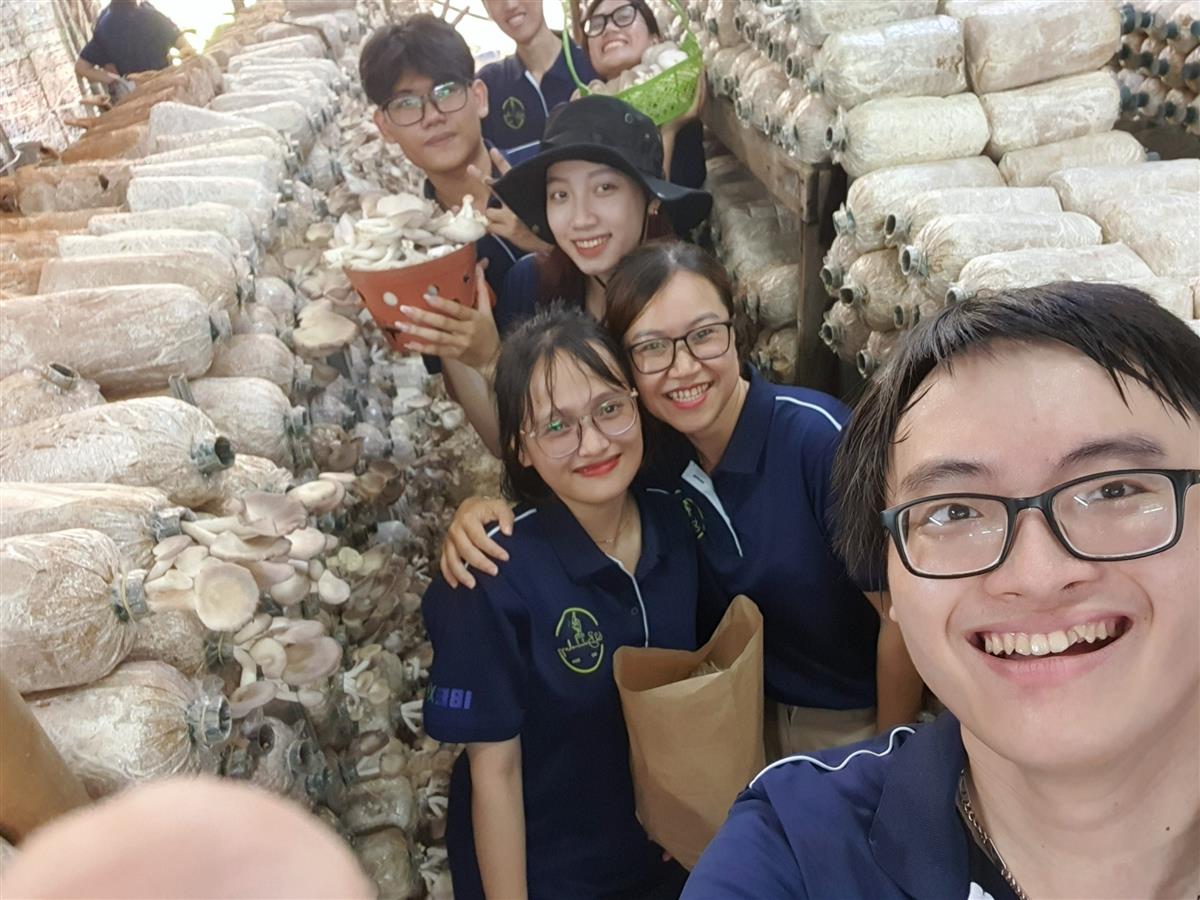 Sinh viên 62CNSH đi thực tế tại Hợp tác xã Nấm Nha Trang, Vĩnh Trung.