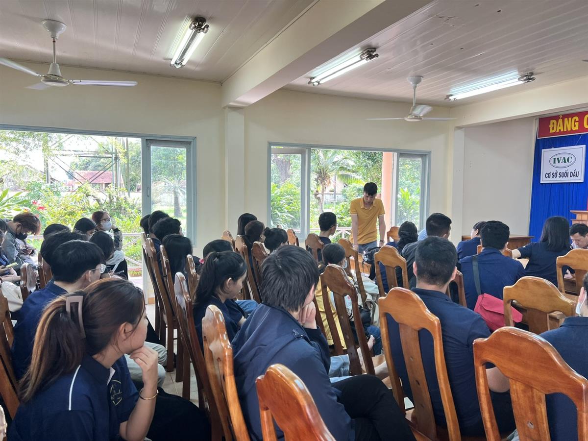 SV còn được anh Cường – Cựu SV K47 của Viện CNSH&MT, hiện đang là Trưởng phòng sản xuất vắc xin cúm giới thiệu về nhà máy và quy trình sản xuất vắc xin cúm đạt chuẩn WHO-GMP được xây dựng vào năm 2008 và lắng nghe những lời khuyên của anh về sự cần thiết của việc tiêm vắc xin cúm mùa.