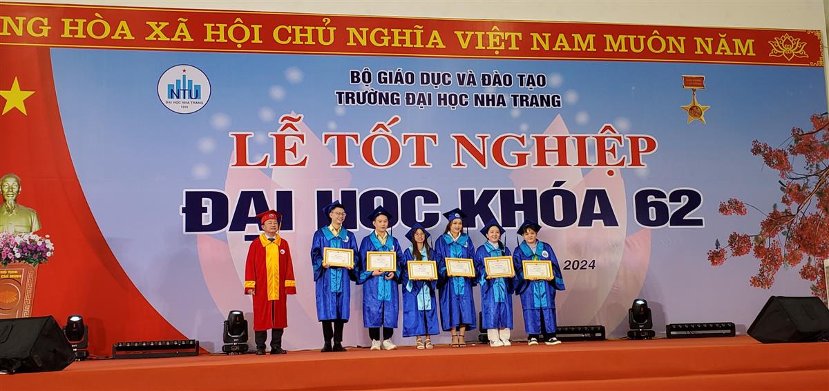 Sáng ngày 28/7/2024 Trường Đại học Nha Trang tổ chức Lễ tốt nghiệp đại học khóa 62 cho 3 khoa là Viện CNSH & MT, Khoa Công nghệ Thực phẩm và Khoa Du lịch tại Nhà thi đấu đa năng với sự tham dự của 426 sinh viên, ban lãnh đạo nhà Trường, thầy cô, và gia đình các em sinh viên.