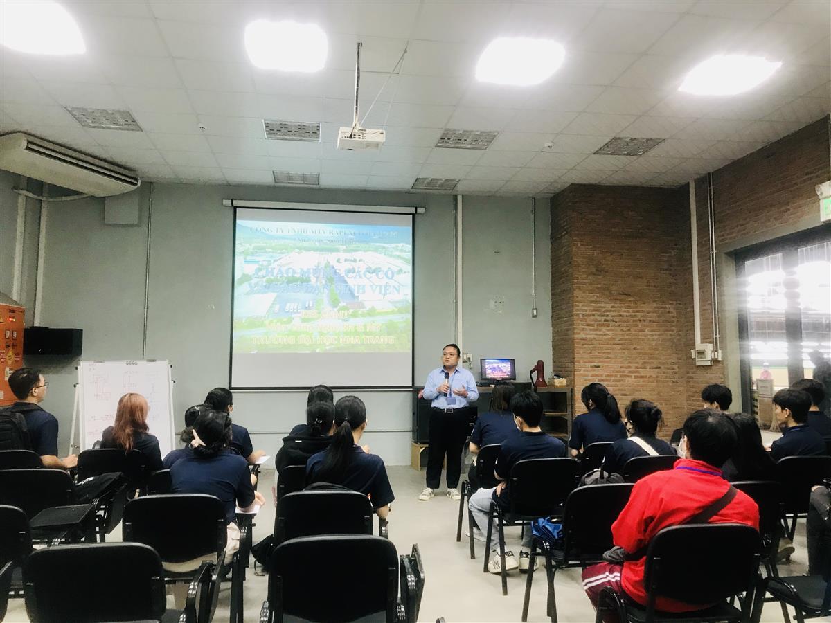 Ngày 02/12/2023, Bộ môn KT Môi trường tổ chức chuyến tham quan kiến tập cho sinh viên lớp 65.CNMT ngành Kỹ thuật môi trường về hệ thống xử lý chất thải, quản lý môi trường và an toàn vệ sinh lao động tại Công ty TNHH MTV Rapexco Đại Nam, KCN Suối Dầu, Khánh Hoà.