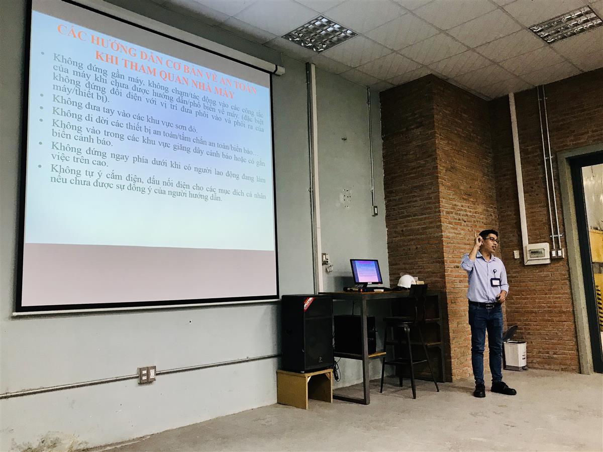 Sau khi tham quan khu xưởng sản xuất của công ty, sinh viên được giới thiệu về hệ thống xử lý bụi tại khu sản xuất. Tiếp đến sinh viên được tham quan hệ thống xử lý nước thải và chất thải rắn của công ty. Sau cùng sinh viên được lắng nghe những chia sẻ của Trưởng phòng An toàn-Vệ sinh-Lao động tại công ty về công việc liên quan, cơ hội việc làm cũng như những động viên trong quá trình học tập.