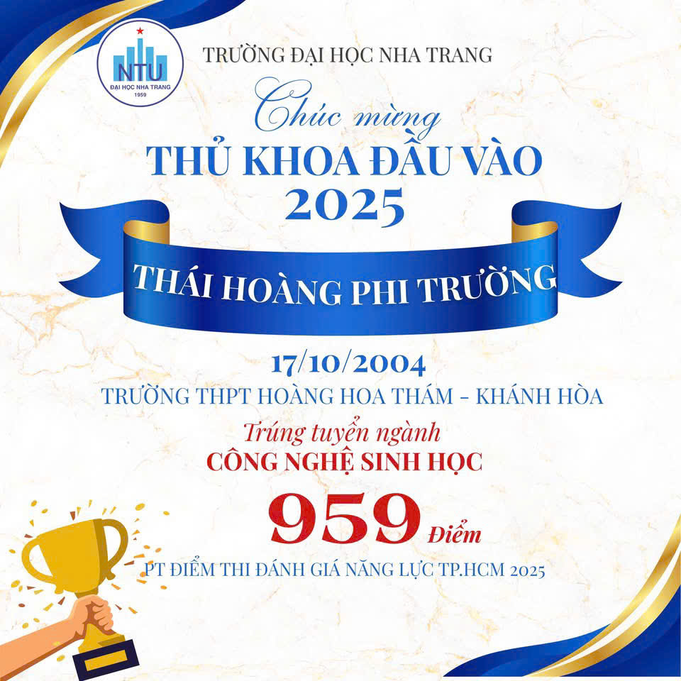 Câu chuyện của Thái Hoàng Phi Trường không chỉ là niềm tự hào cho tân sinh viên Viện Công nghệ sinh học và Môi trường, Trường Đại học Nha Trang, mà còn truyền cảm hứng cho nhiều bạn trẻ dám theo đuổi đam mê, dám thay đổi để trưởng thành.