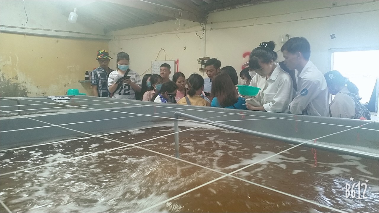 Tham quan phòng ươm nuôi tôm thẻ với sự giới thiệu của anh Nguyễn Văn Hưng – giám đốc của Công ty TNHH Hưng Phát Bio.
