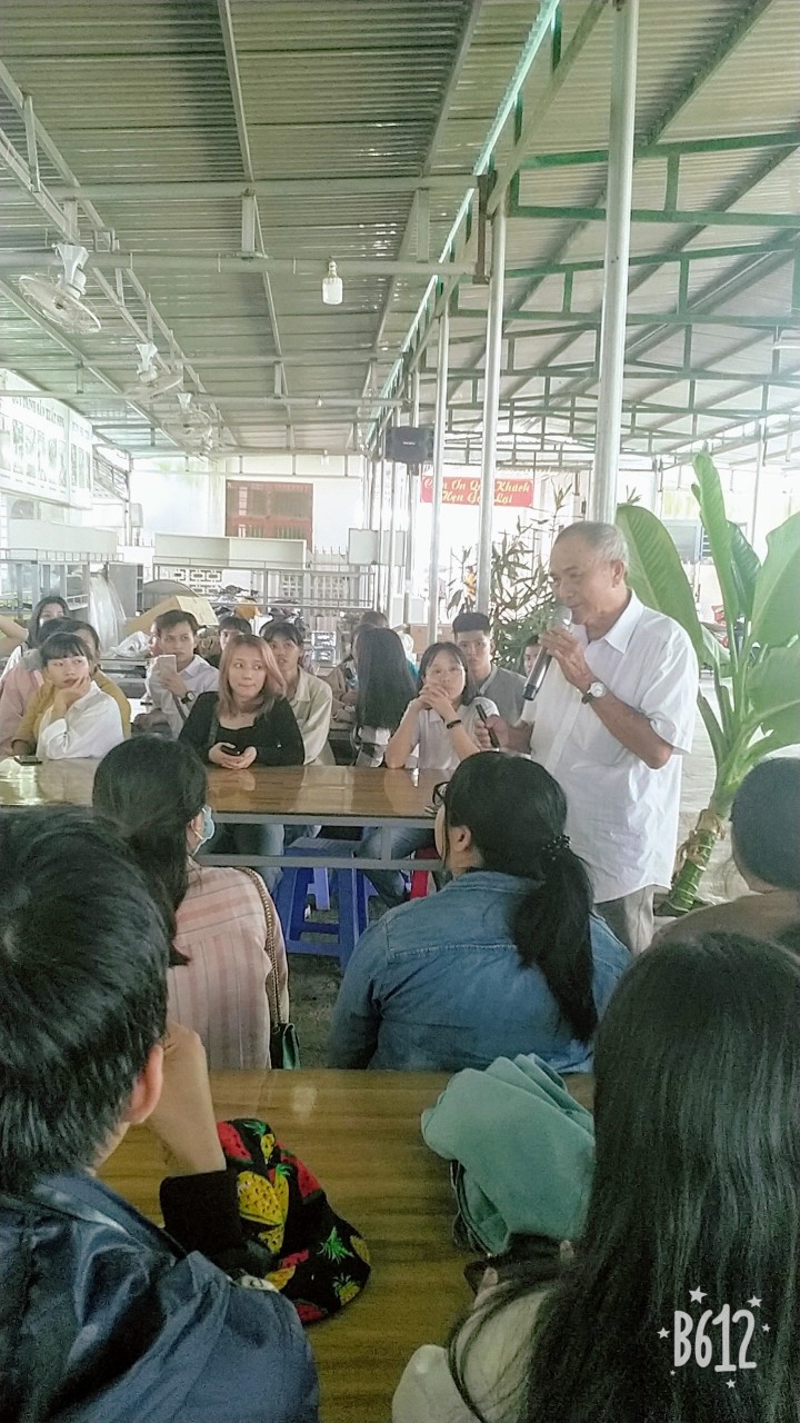 Cô Khúc Thị An giới thiệu về trường Đại học Nha Trang và mục tiêu của chuyến kiến tập