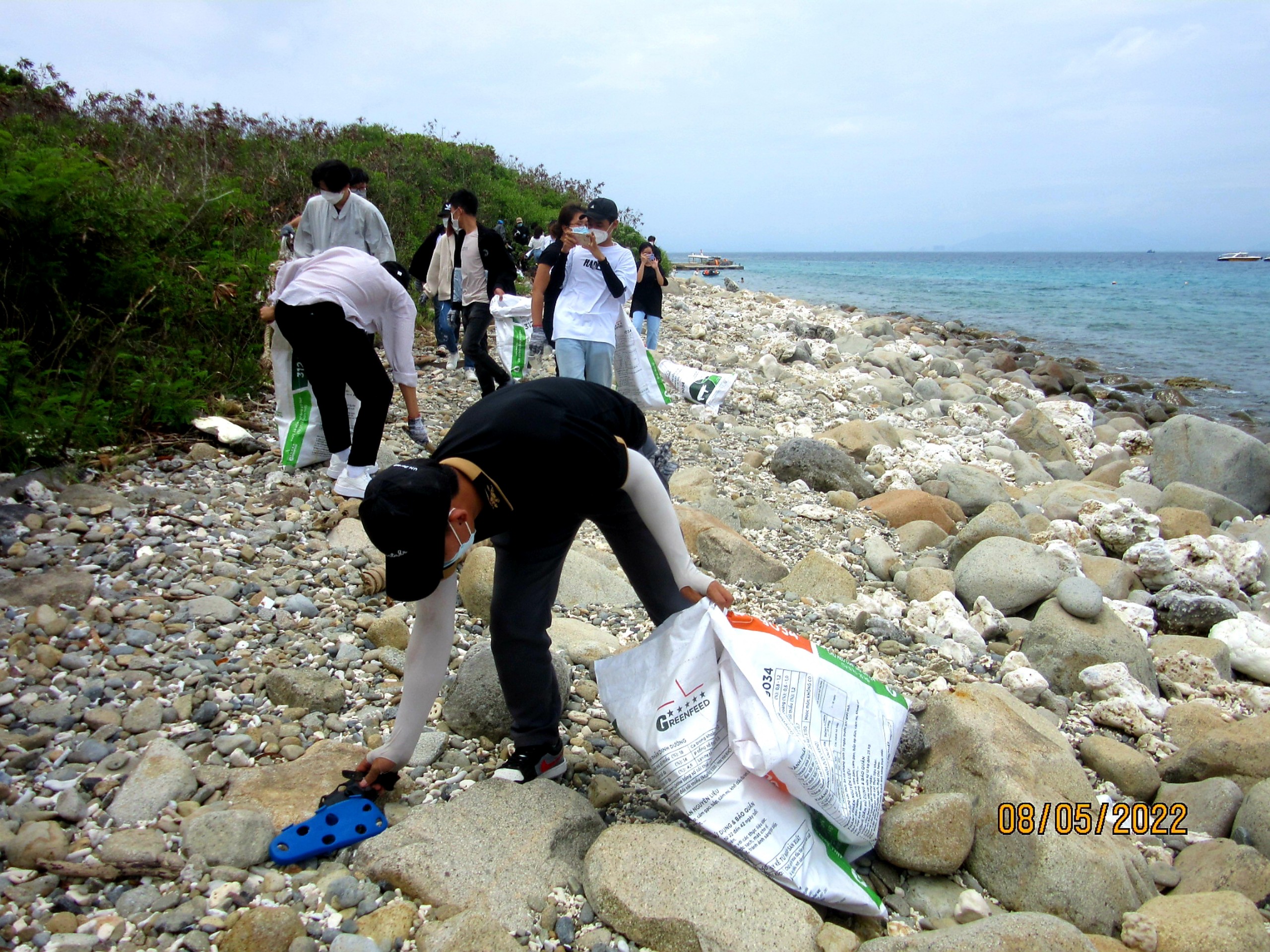 Sinh viên tham gia nhặt rác quanh đảo Hòn Mun