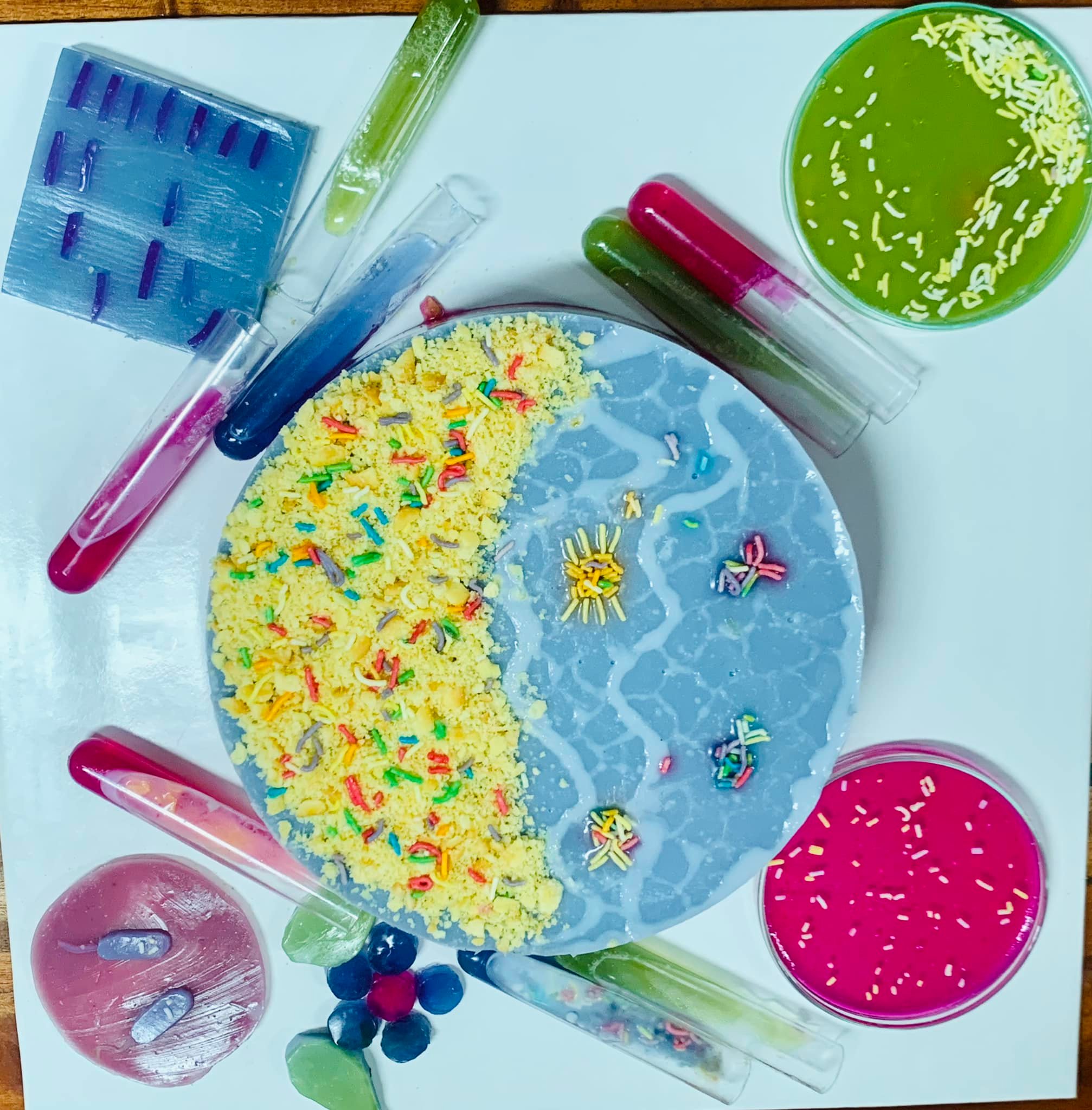 Đặc biệt năm nay, Viện đã đổi mới hình thức để các em làm những sản phẩm cho "bữa tiệc sinh học". Các sinh viên ngành CNSH đã lam các sản phẩm thực sự ấn tượng và đầy sáng tạo như mô hình corona virus, các sản phẩm trong phòng thí nghiệm trong đĩa pestri như khuẩn lạc vi khuẩn, mô hình điện di, đặc biệt là mô hình ô nhiễm đại dương, tiệc trà sinh học. Tất râ cá sản phẩm đều được làm từ nguyên liệu sinh học.