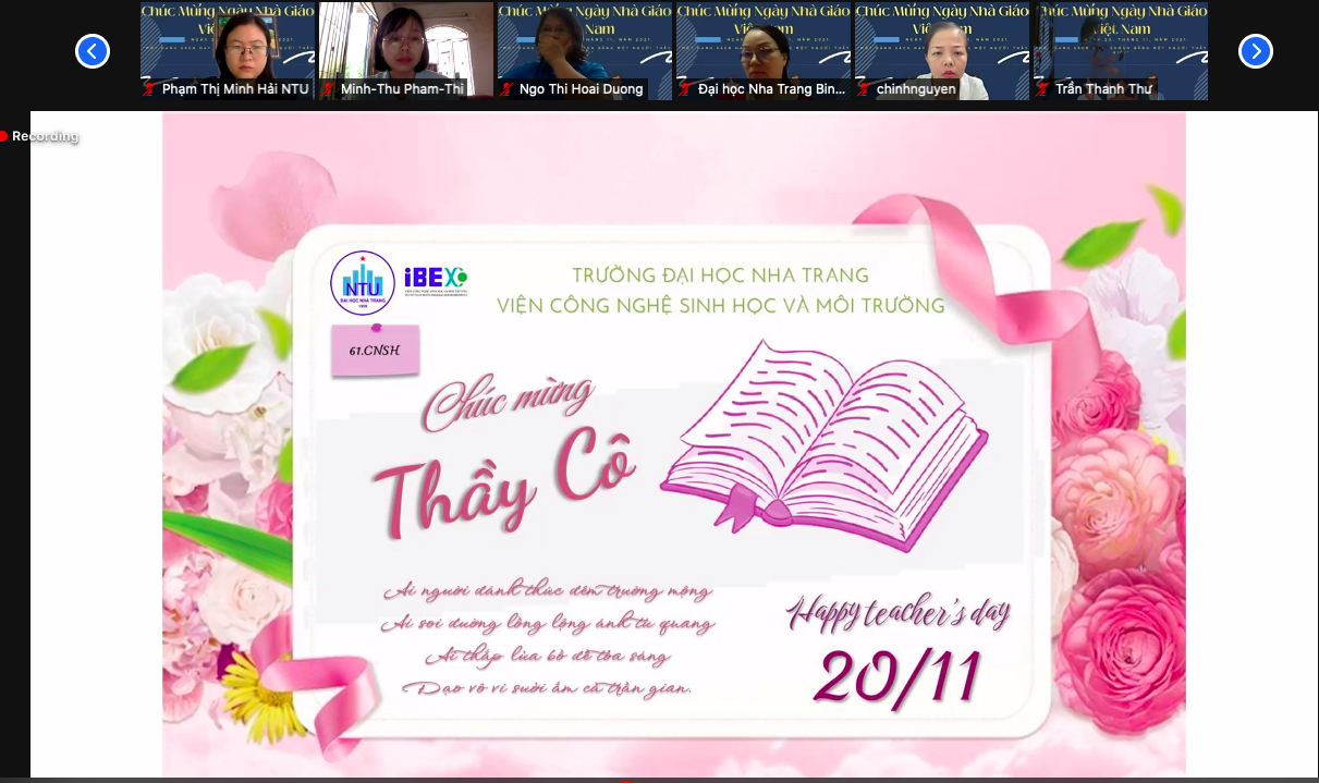 Sáng thứ bảy, ngày 20.11.21, cán bộ, giảng viên và sinh viên Viện CNSH&MT đã tổ chức lễ kỷ niệm trong không khí trang trọng, ấm cúng và đọng lại những kỷ niệm khó quên. Lễ kỷ niệm năm nay được tổ chức theo hình thức trực tuyến trên zoom do đoàn thành niên Viện chủ trì.