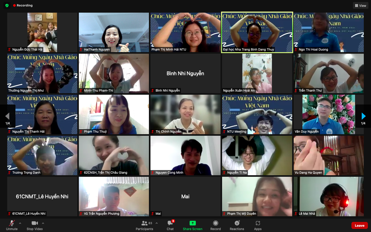 Các lớp đã gửi đến thầy cô những lời chúc tốt đẹp thông qua các poster, video clips và những bài hát đầy tình cảm.