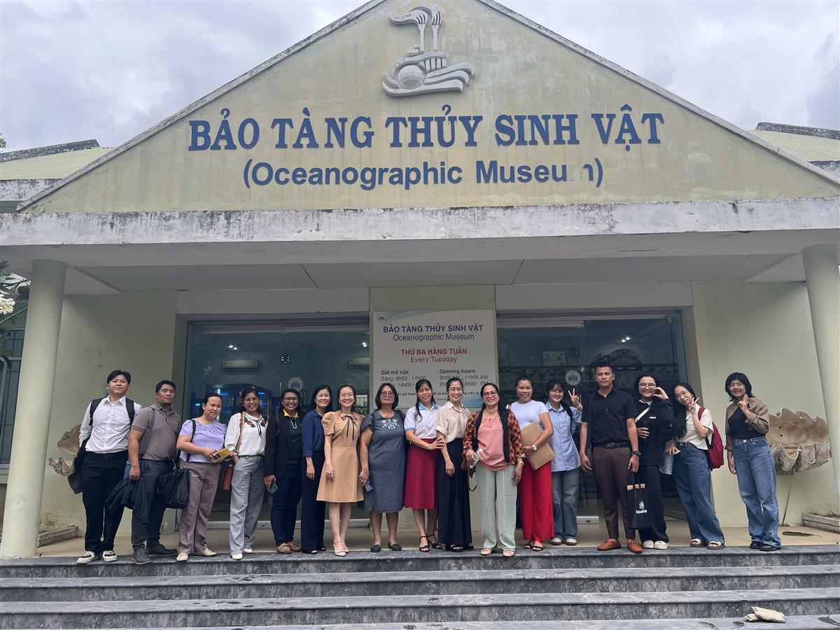 Đoàn tham quan bảo tàng Thủy sinh vật sau chuyến làm việc tại Viện CNSH&MT