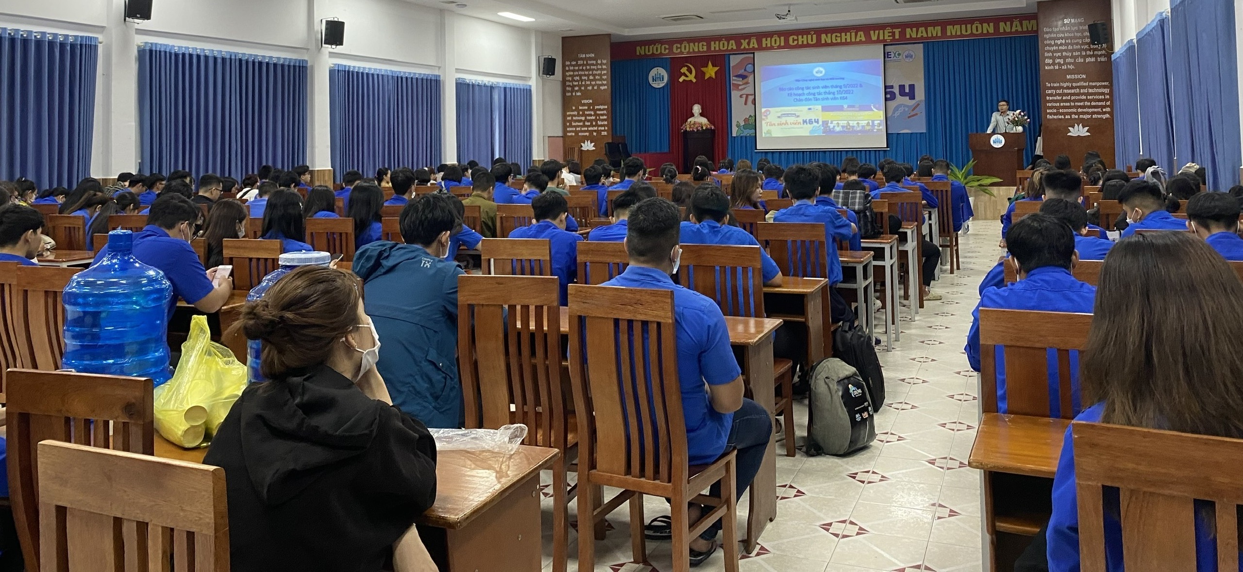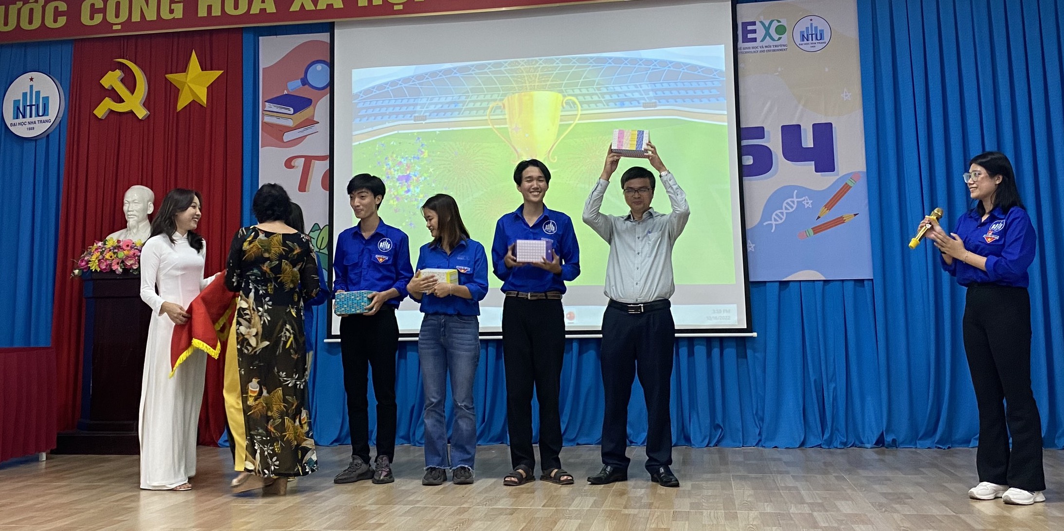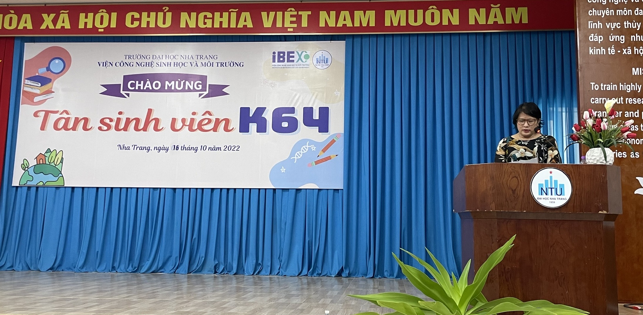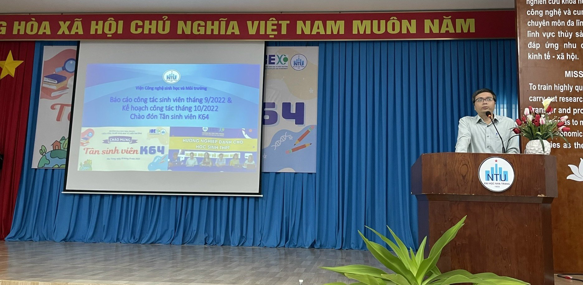Hòa chung trong không khí vui tươi mừng năm học mới 2022-2023, chiều ngày 16/10/2022 tại Hội trường số 1 Đại học Nha Trang, Viện Công nghệ sinh học và môi trường đã tổ chức Chương trình “Chào đón tân sinh viên K64” kết hợp chào cờ đầu năm với các hoạt động sôi nổi nhằm khích lệ tinh thần học tập cho sinh viên năm thứ nhất vừa bước chân vào giảng đường.