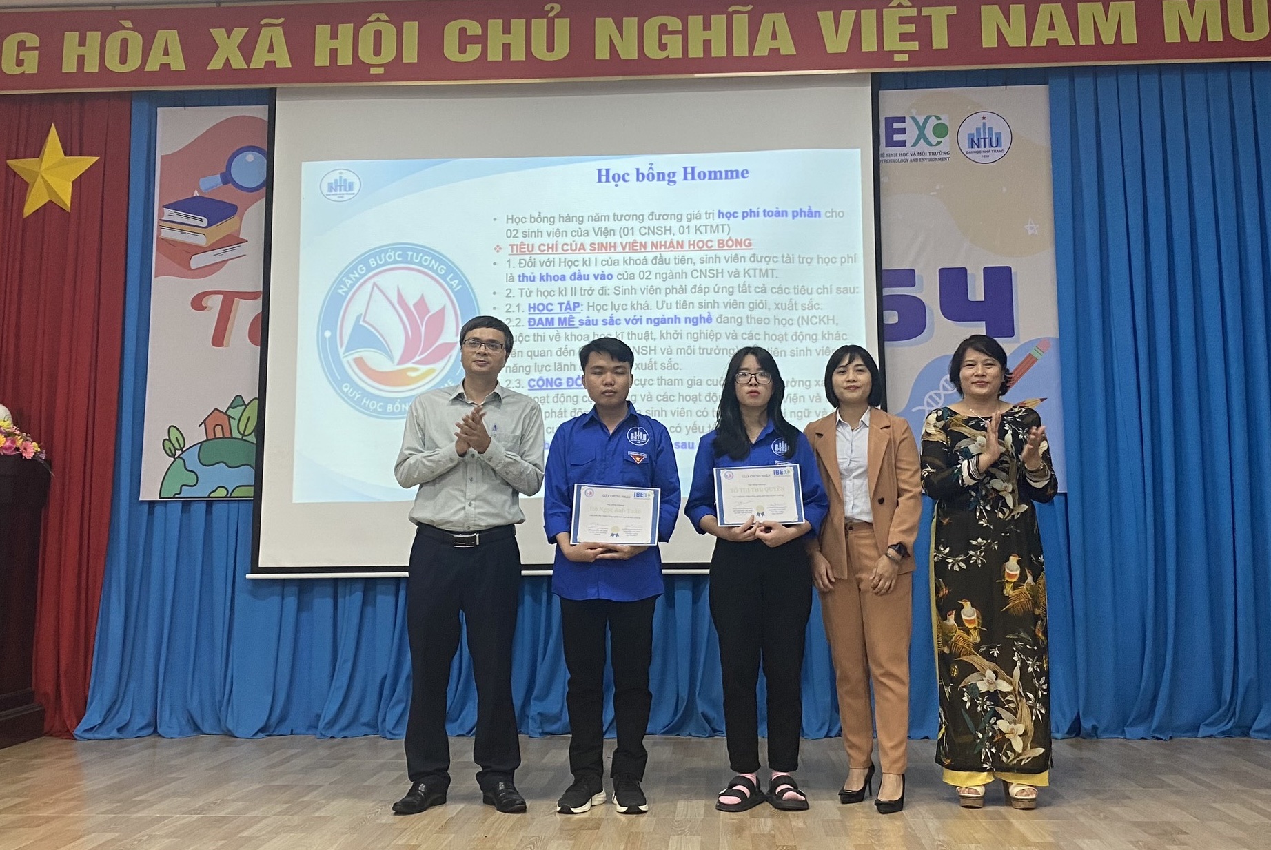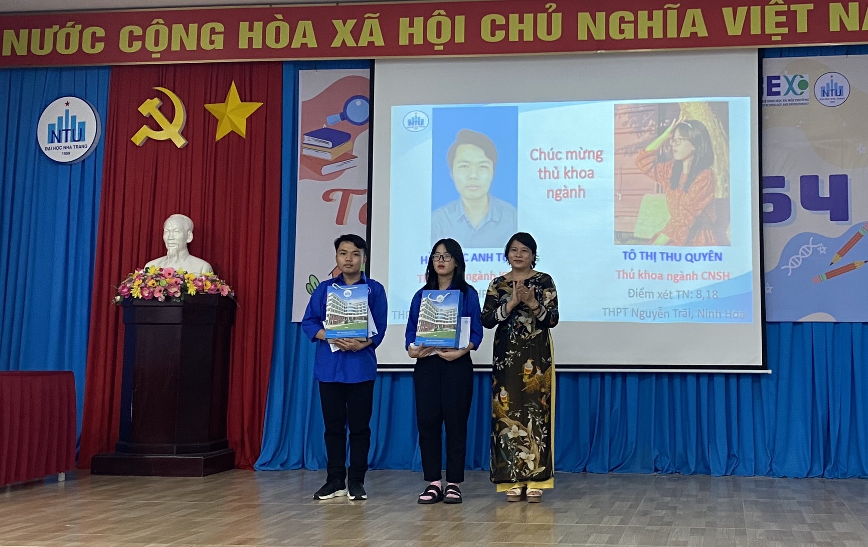 Chương trình cũng đã vinh danh tân sinh viên Tô Thị Thu Quyên – K64 CNSH và Hồ Ngọc Anh Tuấn -64 KTMT là 2 sinh viên có điểm số cao nhất trong xét tuyển của 02 ngành đào tạo trong Viện. Đồng thời, 2 thủ khoa sẽ nhận được Quỹ học bổng Homme tài trợ học phí học kì 1 năm học 2022-2023. Ngoài ra, Viện cũng đã trao tặng mỗi tân sinh viên 1 phần quà chúc mừng, mong tất cả các em nỗ học học tập và có nhiều kỉ niệm đẹp khi trở thành sinh viên.