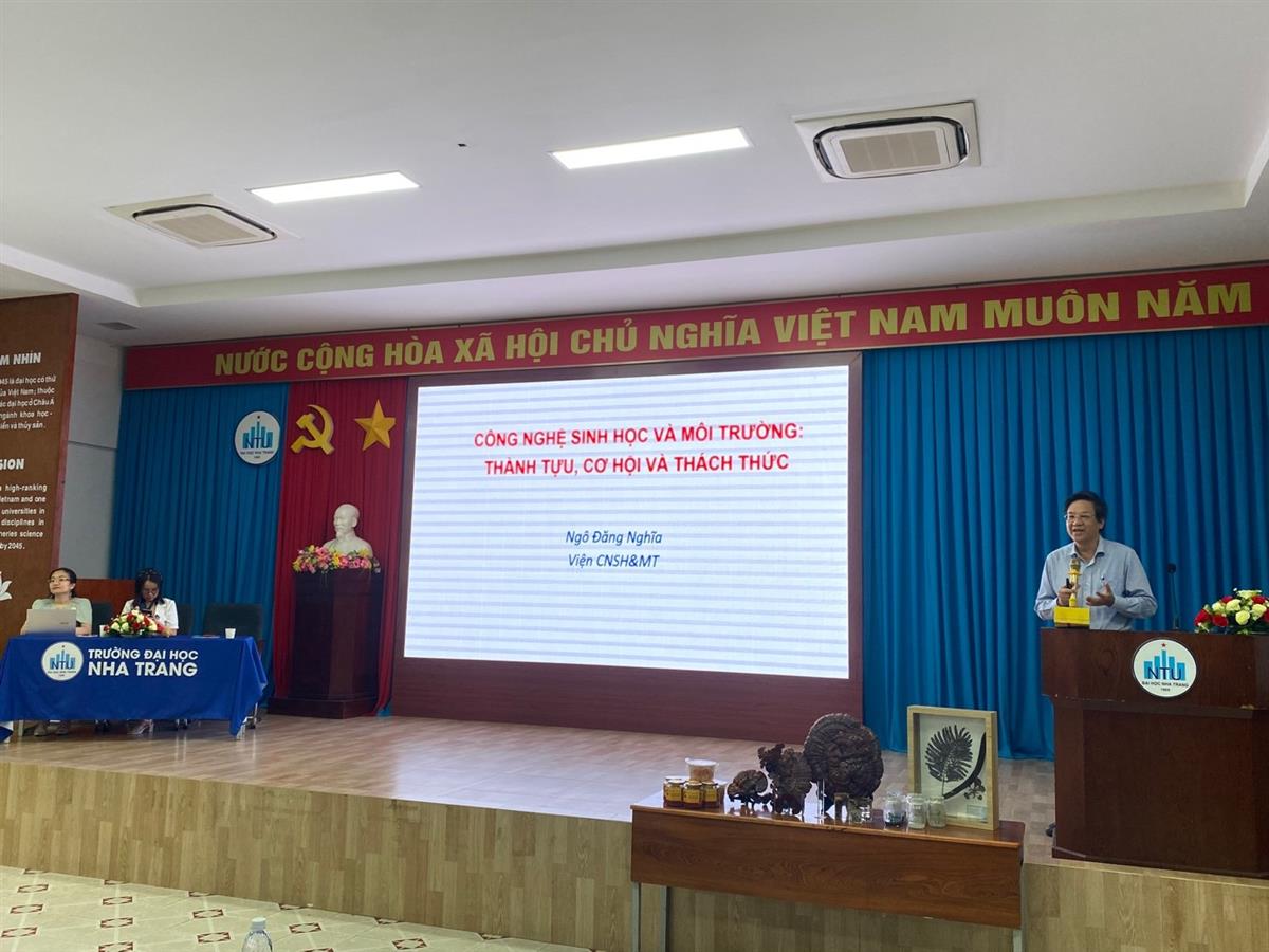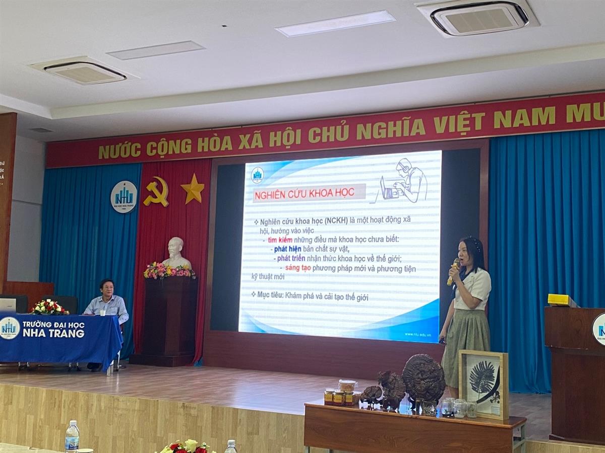 Nhằm trình bày các kết quả NCKH nổi bật của sinh viên Viện; giới thiệu về ngành CNSH và KTMT trong bối cảnh hội nhập, giúp sinh viên hiểu được tầm quan trọng của nghiên cứu khoa học và hợp tác quốc tế trong thời đại 4.0, sáng ngày 15/10/2023, tại Hội trường số 1, Đại học Nha Trang, Viện CNSH&MT đã tổ chức sinh hoạt học thuật cấp đơn vị với chủ đề: Nghiên cứu khoa học và hợp tác quốc tế tại Viện CNSH&MT.